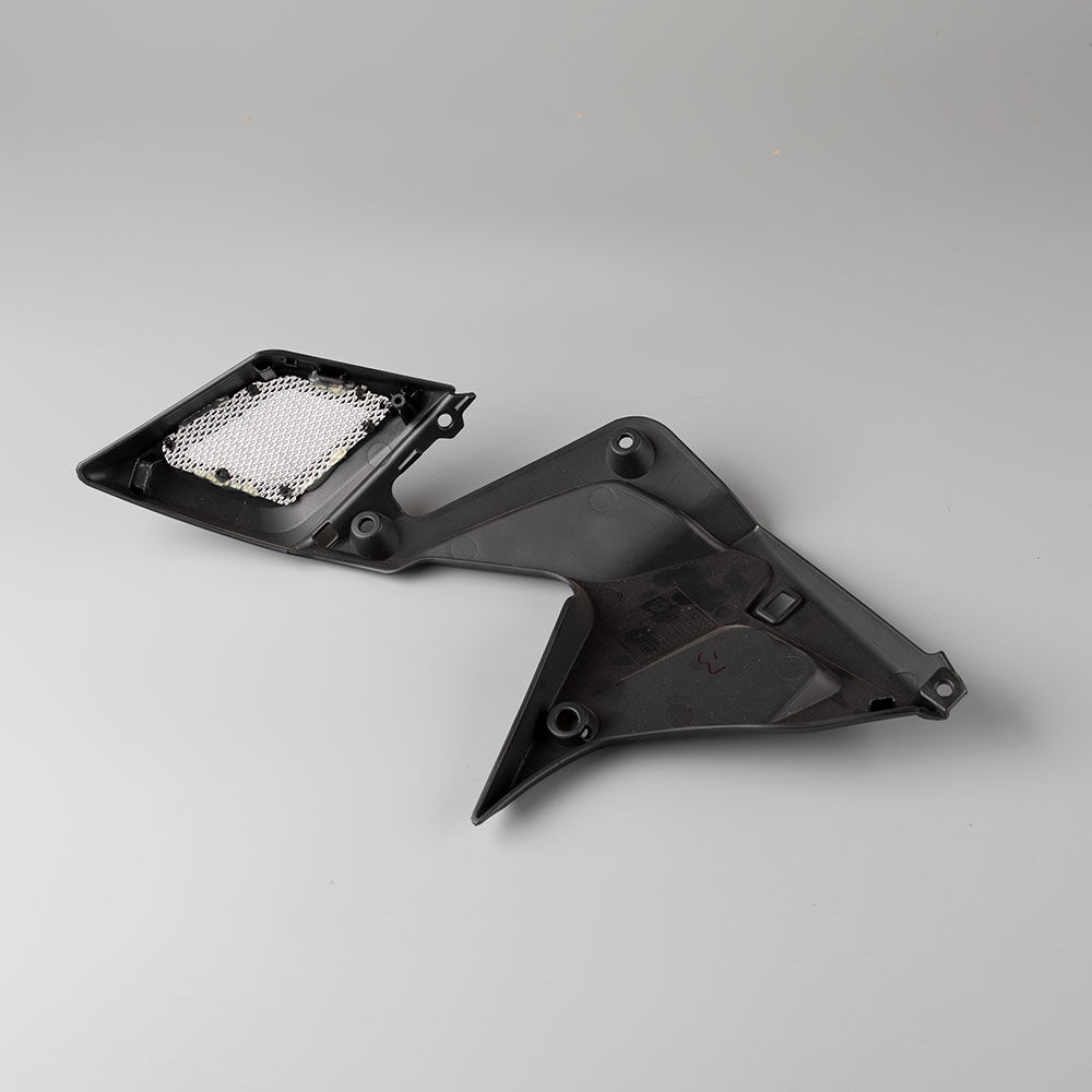 The left side panel on a motorcycle is a bodywork component located on the left side of the bike. Typically made from materials like plastic, fiberglass, or carbon fiber, the left side panel is designed to be durable and resistant to impact, heat, and environmental