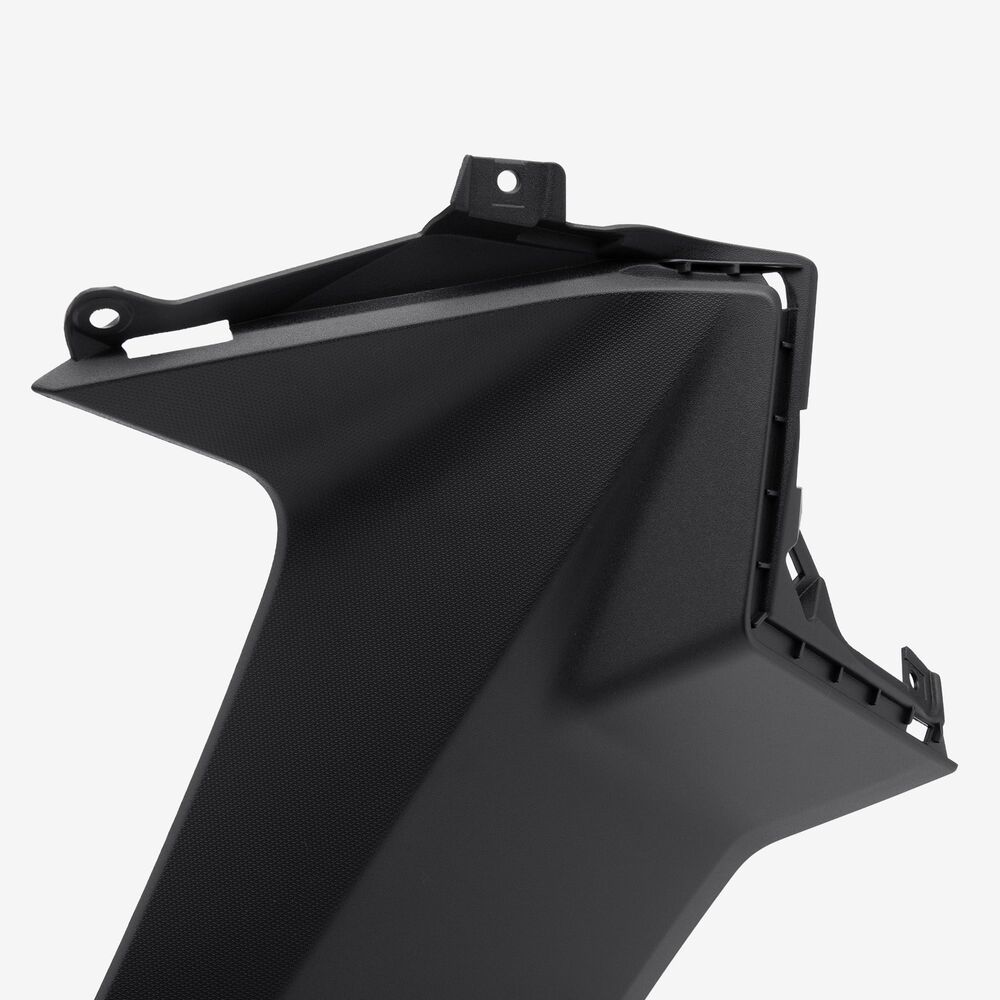 The right side panel on a motorcycle is a bodywork component located on the right side of the bike. Typically made from materials like plastic, fiberglass, or carbon fiber, the right side panel is designed to be durable and resistant to impact, heat, and environmental factors.