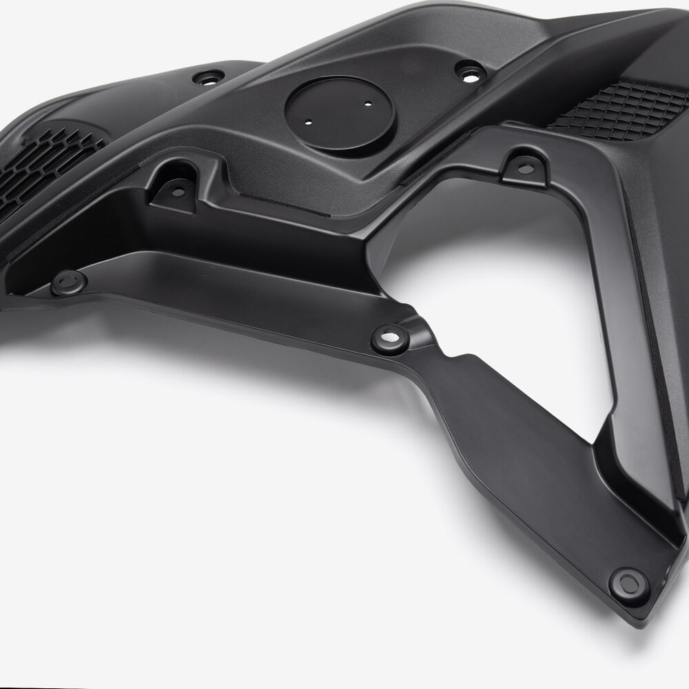 The fuel tank panel left on a motorcycle is a component that covers or forms part of the left side of the fuel tank. It is often designed to provide both protection and aesthetic enhancement.