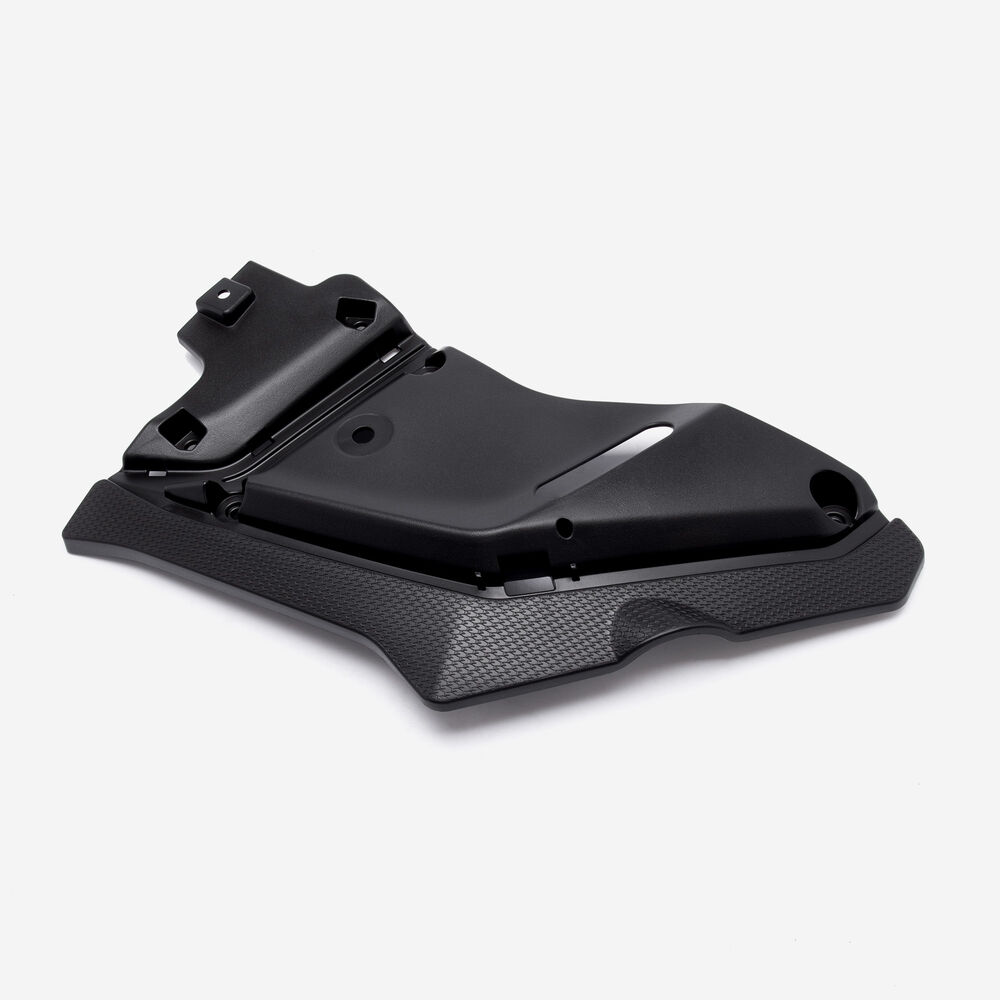 The trim panel on a motorcycle is a decorative and functional component that covers or frames various parts of the motorcycle's bodywork.