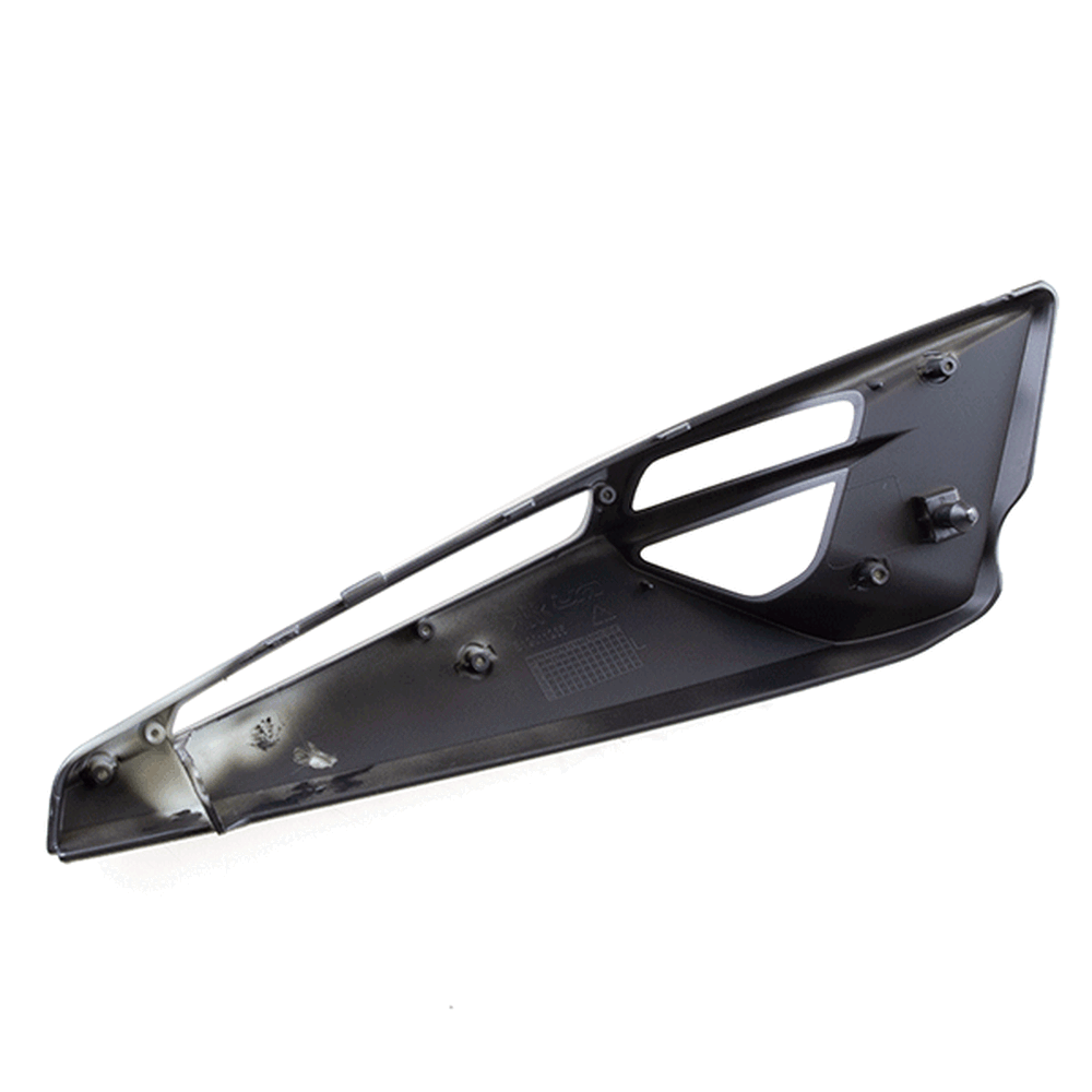 The trim panel on a motorcycle is a decorative and functional component that covers or frames various parts of the motorcycle's bodywork.