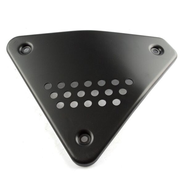 The trim panel on a motorcycle is a decorative and functional component that covers or frames various parts of the motorcycle's bodywork.