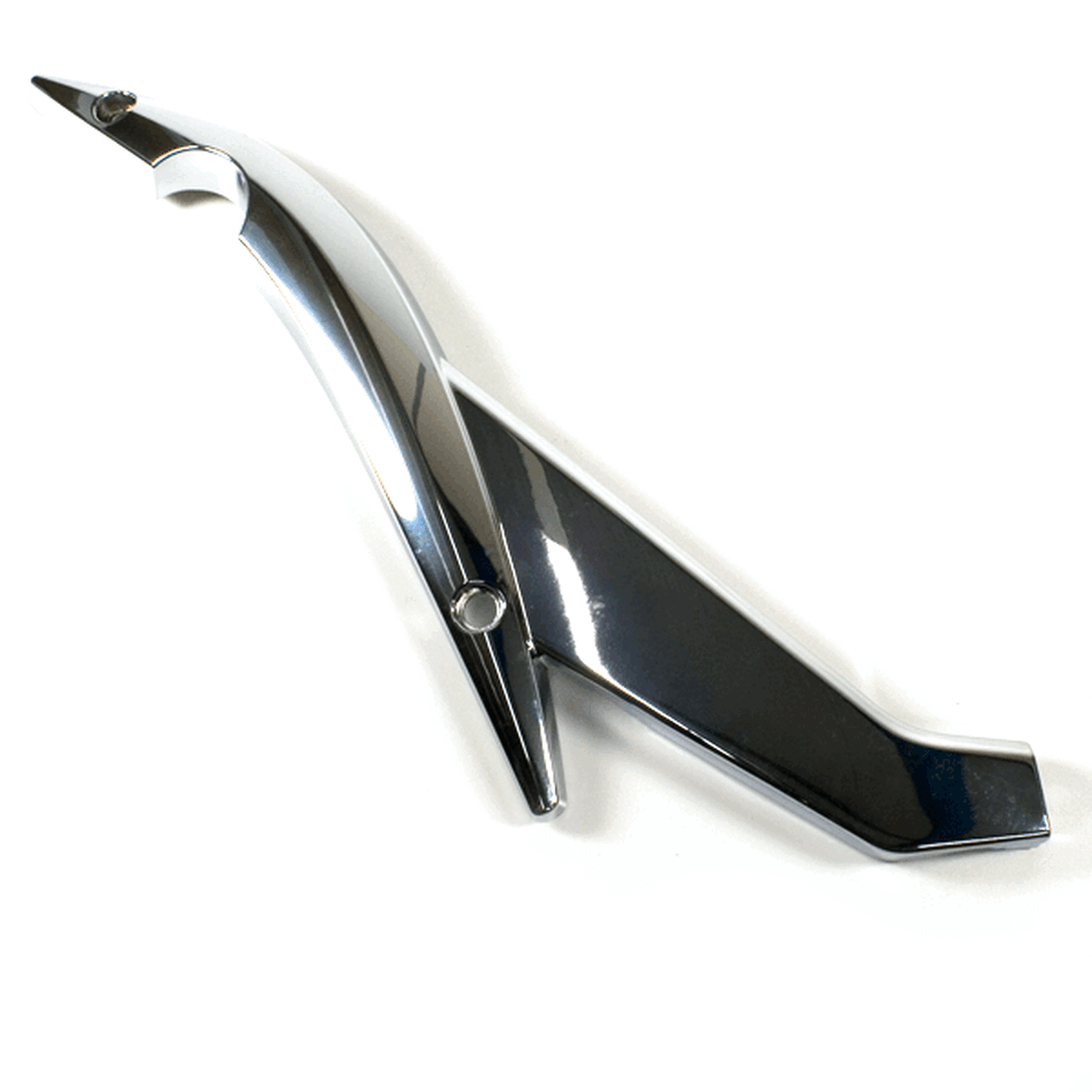 The trim panel on a motorcycle is a decorative and functional component that covers or frames various parts of the motorcycle's bodywork.
