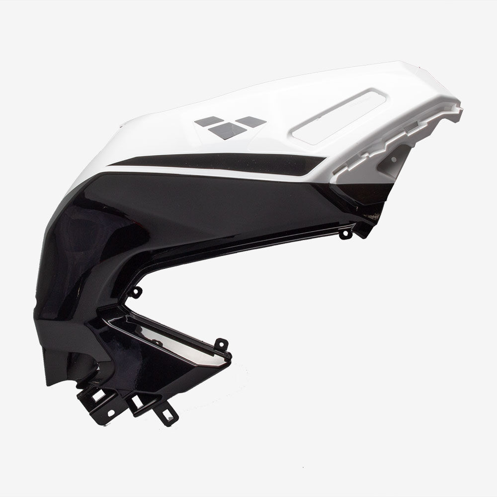 The fuel tank panel (right) on a motorcycle is a body panel that covers the right side of the fuel tank. It serves both functional and aesthetic purposes.
