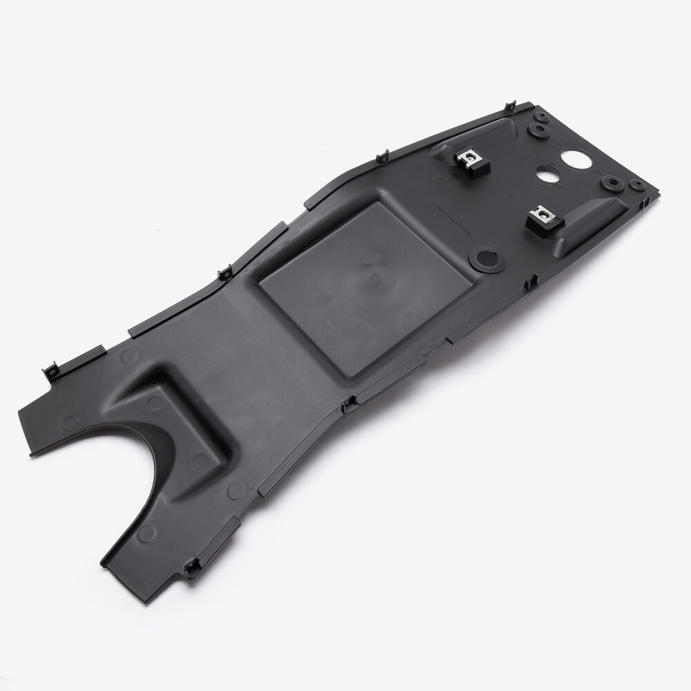 The undertray on a motorcycle is a panel or cover located underneath the rear section of the bike, often extending from the seat area to the tail.