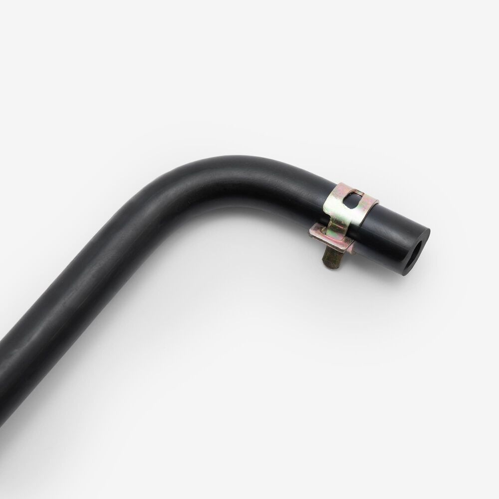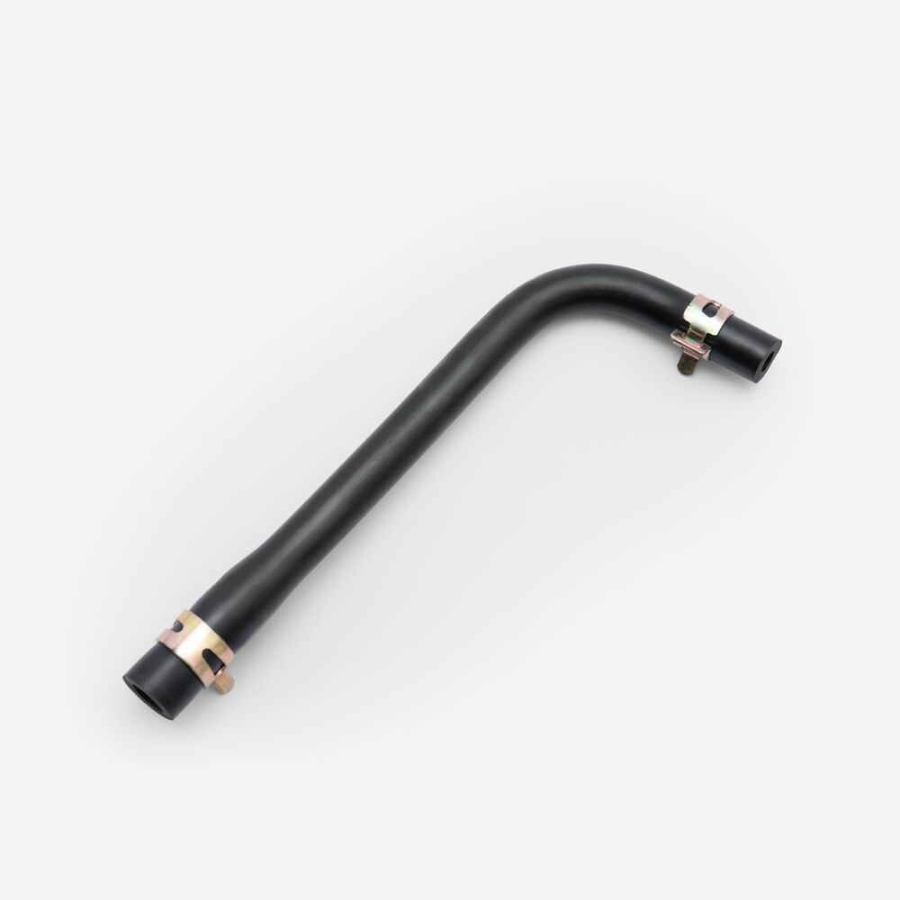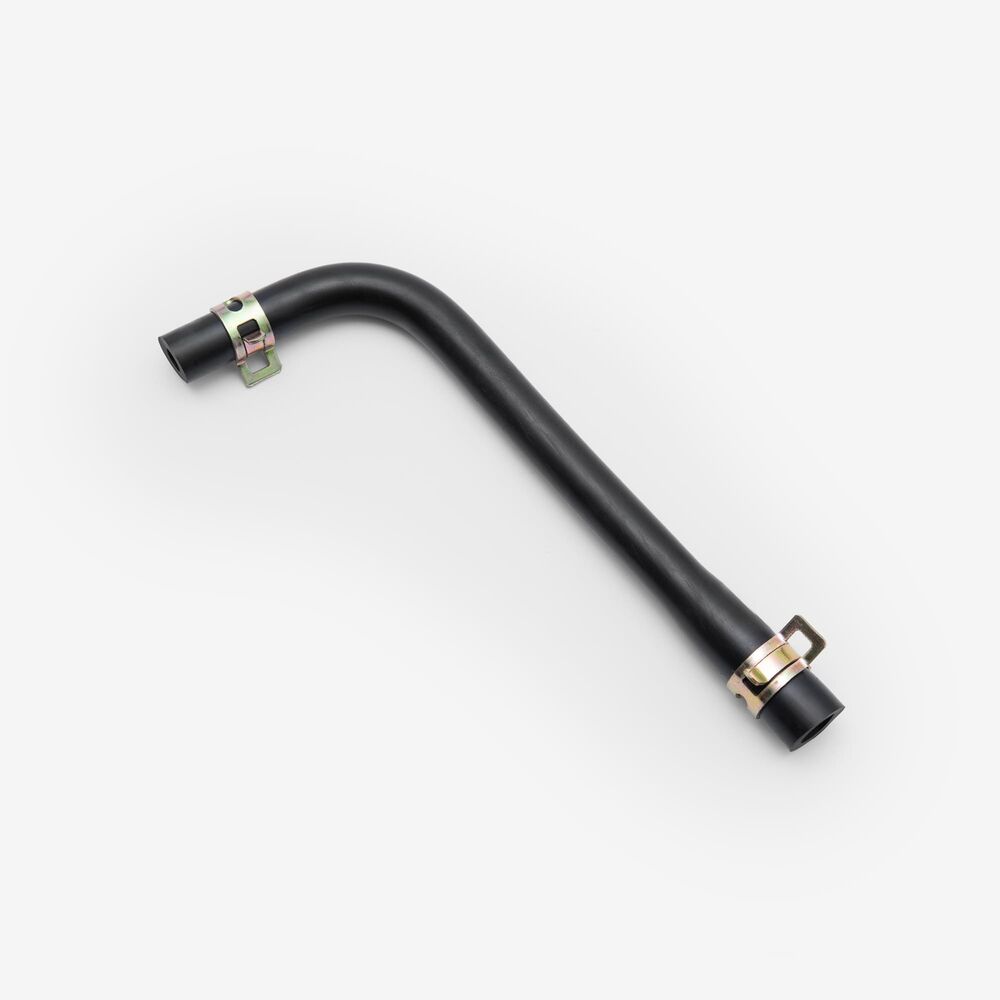 The breather pipe on a motorcycle is a component that allows the engine to vent excess pressure and gases from the crankcase. It typically connects the engine's crankcase to the air intake or a separate breather system, helping to manage internal pressures and ensure proper engine operation.