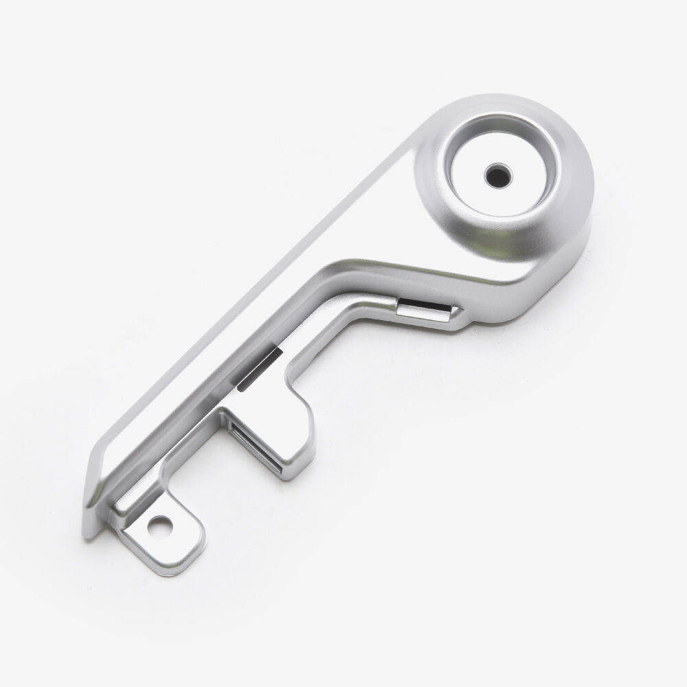 The radiator bracket is a support component that secures the radiator to the motorcycle's frame or mounting points. Typically made from metal or high-strength plastic, the bracket provides stability and alignment for the radiator, ensuring it is firmly positioned for optimal cooling performance. It helps to absorb vibrations and impacts, preventing potential damage to the radiator and maintaining proper coolant flow.