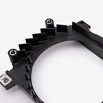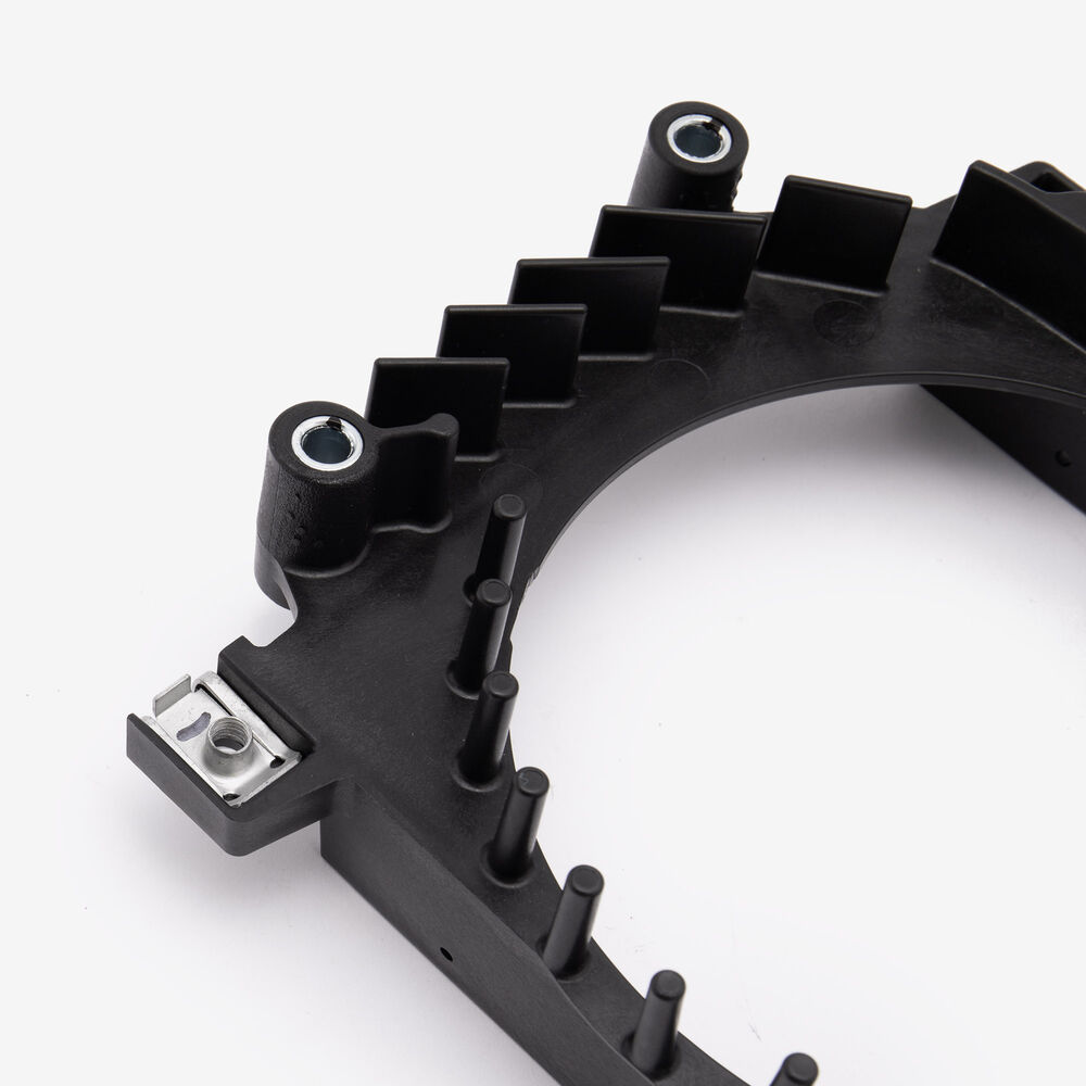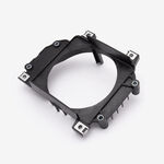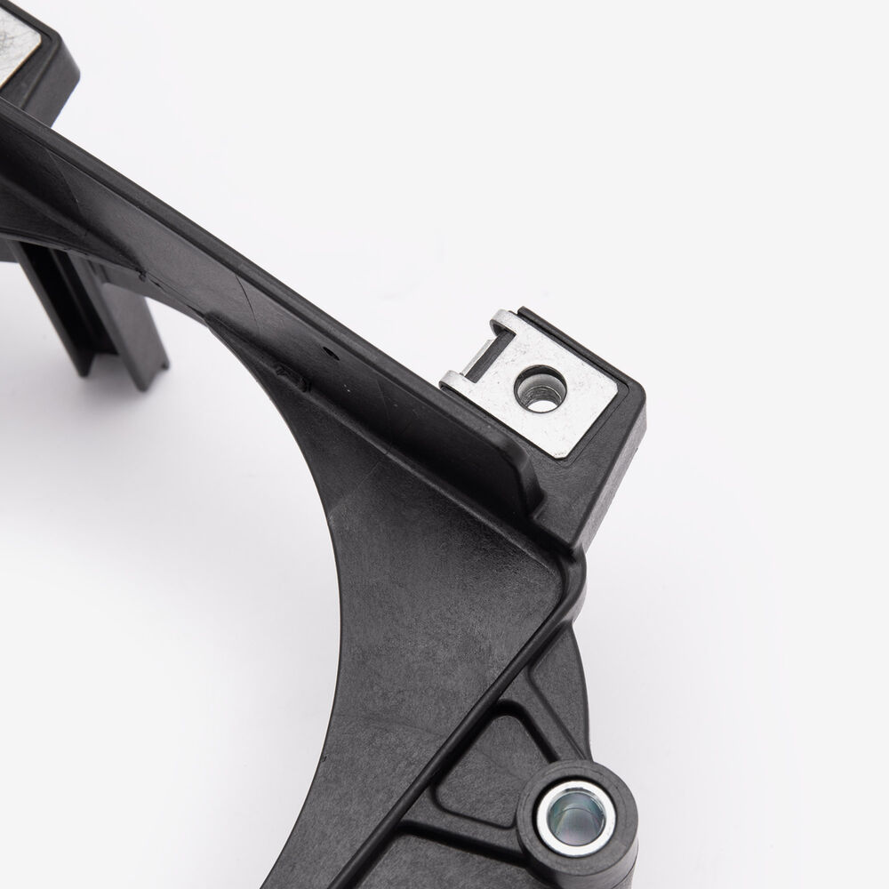 The radiator bracket is a support component that secures the radiator to the motorcycle's frame or mounting points. Typically made from metal or high-strength plastic, the bracket provides stability and alignment for the radiator, ensuring it is firmly positioned for optimal cooling performance. It helps to absorb vibrations and impacts, preventing potential damage to the radiator and maintaining proper coolant flow.