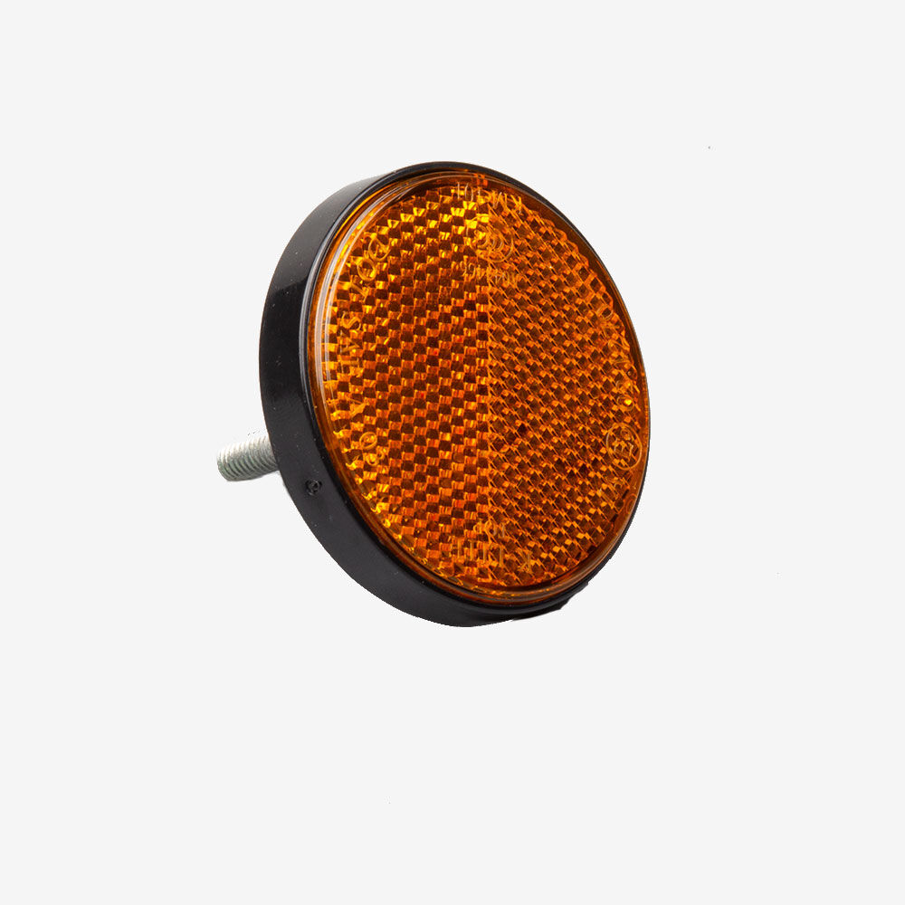 A reflector on a motorcycle is a safety feature designed to enhance visibility and ensure that the bike is more noticeable to other road users, especially in low-light or nighttime conditions. It typically consists of a reflective material or lens mounted on various parts of the motorcycle, such as the rear, sides, or front. When light from headlights or other sources strikes the reflector, it bounces back, making the motorcycle more visible to drivers.