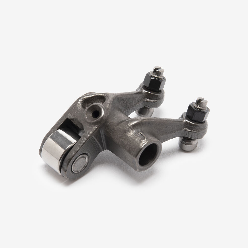 The rocker arm is a pivotal component in a motorcycle’s engine valvetrain that transfers the motion from the camshaft to the engine's valves. It is typically a lever-like mechanism that pivots on a shaft or bearing, pushing the valve open and then allowing it to close as the camshaft rotates. By converting the rotational motion of the camshaft into the linear motion needed to operate the valves, the rocker arm plays a critical role in regulating the engine’s air-fuel intake and exhaust.