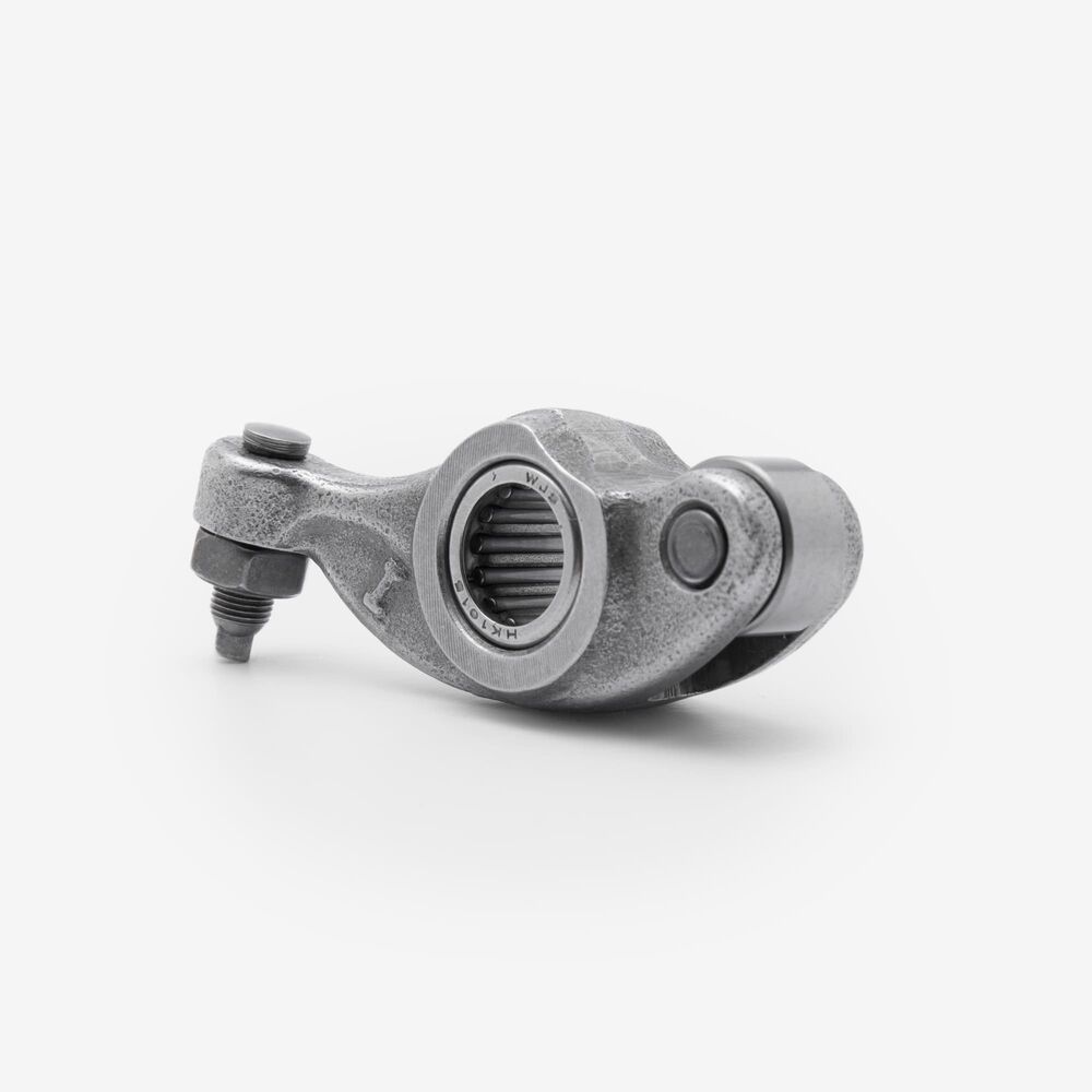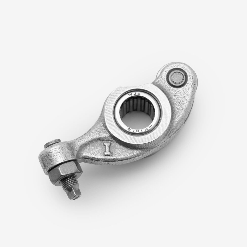 The rocker arm is a pivotal component in a motorcycle’s engine valvetrain that transfers the motion from the camshaft to the engine's valves. It is typically a lever-like mechanism that pivots on a shaft or bearing, pushing the valve open and then allowing it to close as the camshaft rotates. By converting the rotational motion of the camshaft into the linear motion needed to operate the valves, the rocker arm plays a critical role in regulating the engine’s air-fuel intake and exhaust.