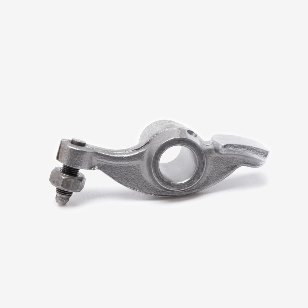 The rocker arm is a pivotal component in a motorcycle’s engine valvetrain that transfers the motion from the camshaft to the engine's valves. It is typically a lever-like mechanism that pivots on a shaft or bearing, pushing the valve open and then allowing it to close as the camshaft rotates. By converting the rotational motion of the camshaft into the linear motion needed to operate the valves, the rocker arm plays a critical role in regulating the engine’s air-fuel intake and exhaust.