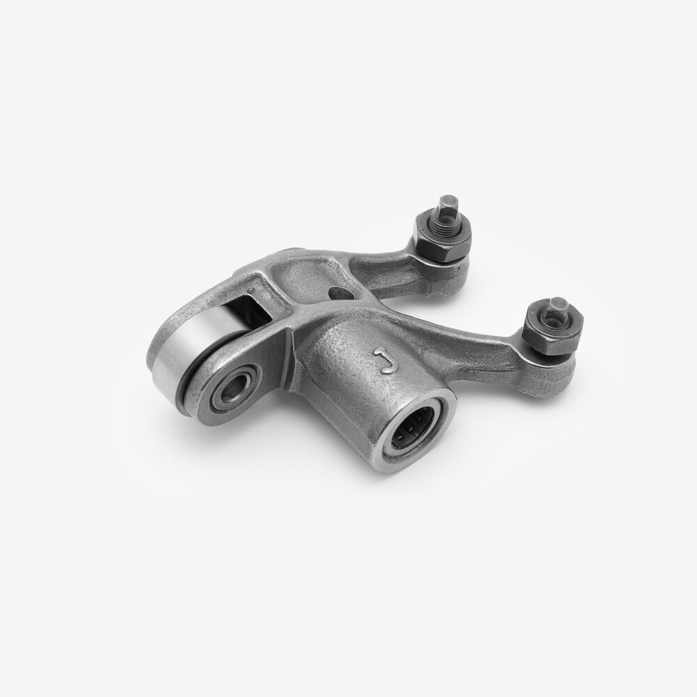 The rocker arm assembly is a crucial component of a motorcycle’s valvetrain, responsible for transferring motion from the camshaft to the engine's valves. It consists of rocker arms mounted on a shaft or supports, which pivot to push the valves open and closed as the camshaft rotates. The assembly ensures precise timing and movement of the valves, which is essential for proper engine operation and performance.