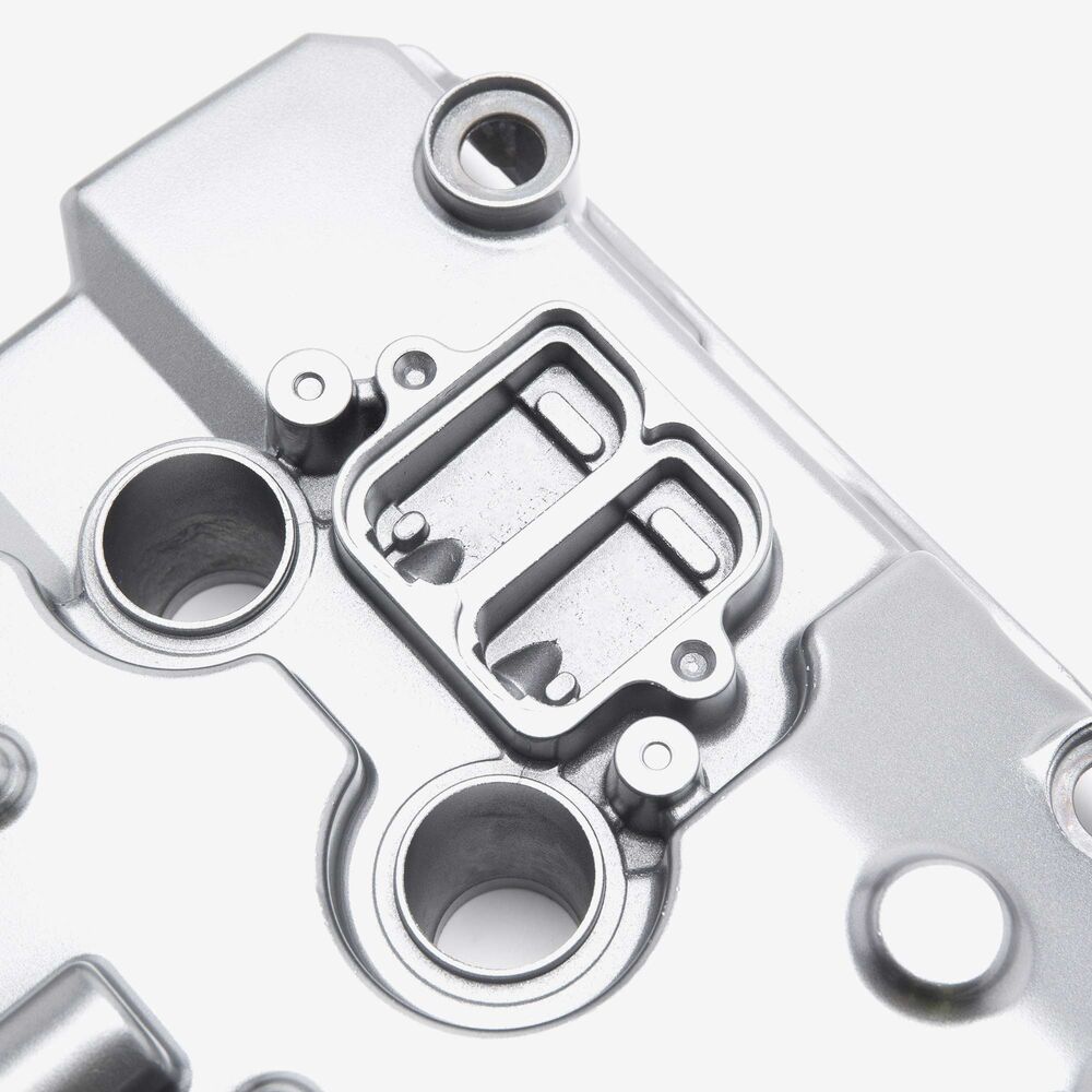 The rocker cover, also known as the valve cover, is a component that sits atop the engine’s cylinder head, covering the rocker arms and valvetrain. Its primary function is to seal the top of the engine, preventing oil leaks and protecting the internal components from dirt, debris, and moisture. The rocker cover typically features a gasket or seal to ensure a tight fit and prevent oil leakage. It may also include provisions for ventilation or oil filler caps.