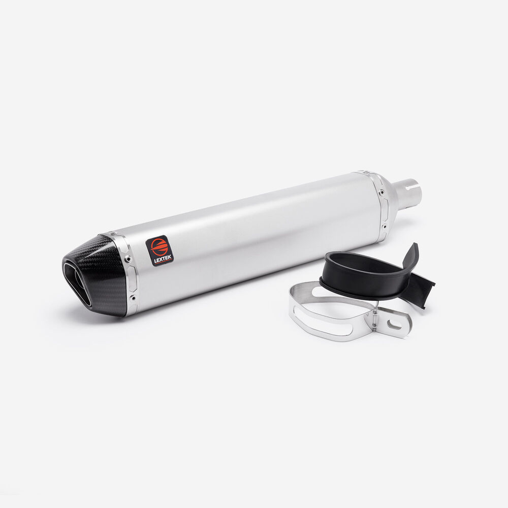 Contents: Matt finish stainless steel silencer with carbon fibre tail pipe and removable baffle.
