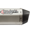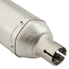 Matt finish stainless steel silencer with carbon fibre tail pipe and removable baffle.