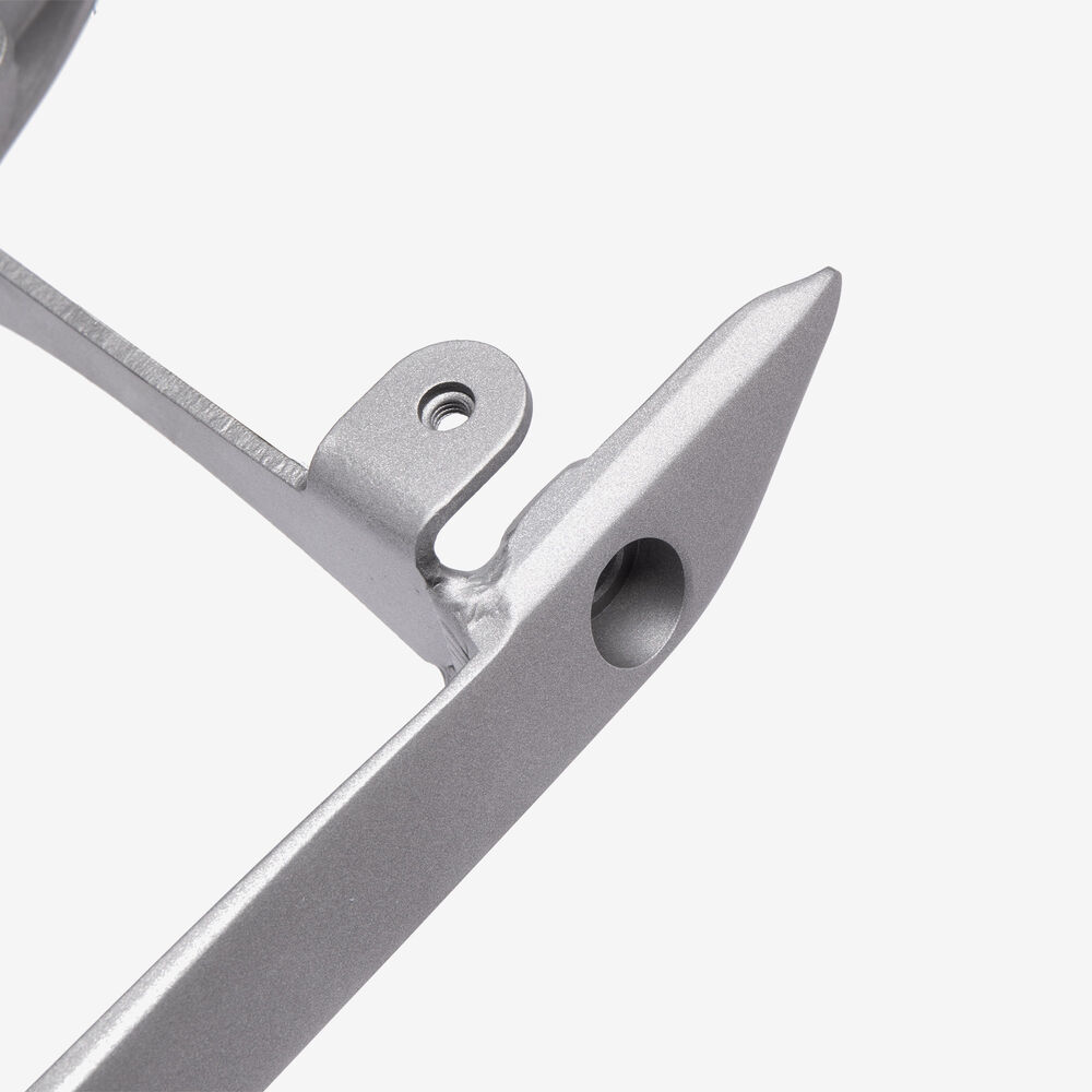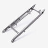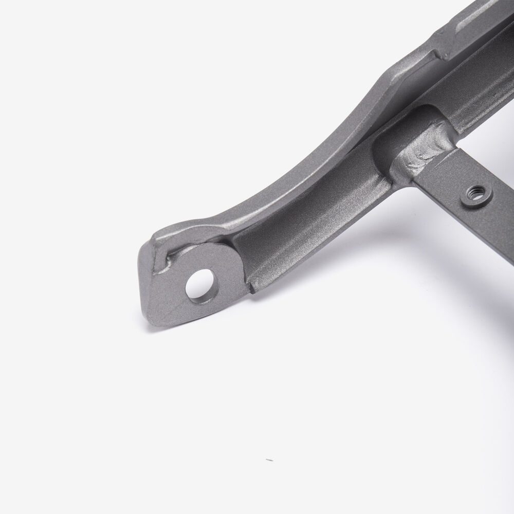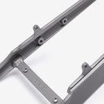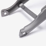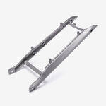 The front subframe of a motorcycle is a structural component that provides support and mounting points for the front section of the bike, including the handlebars, front suspension, and sometimes the engine or fuel tank. It is typically made from lightweight yet durable materials such as steel or aluminum. The front subframe helps to transfer loads and stresses from the front suspension and steering components to the main frame of the motorcycle, contributing to overall stability and handling.