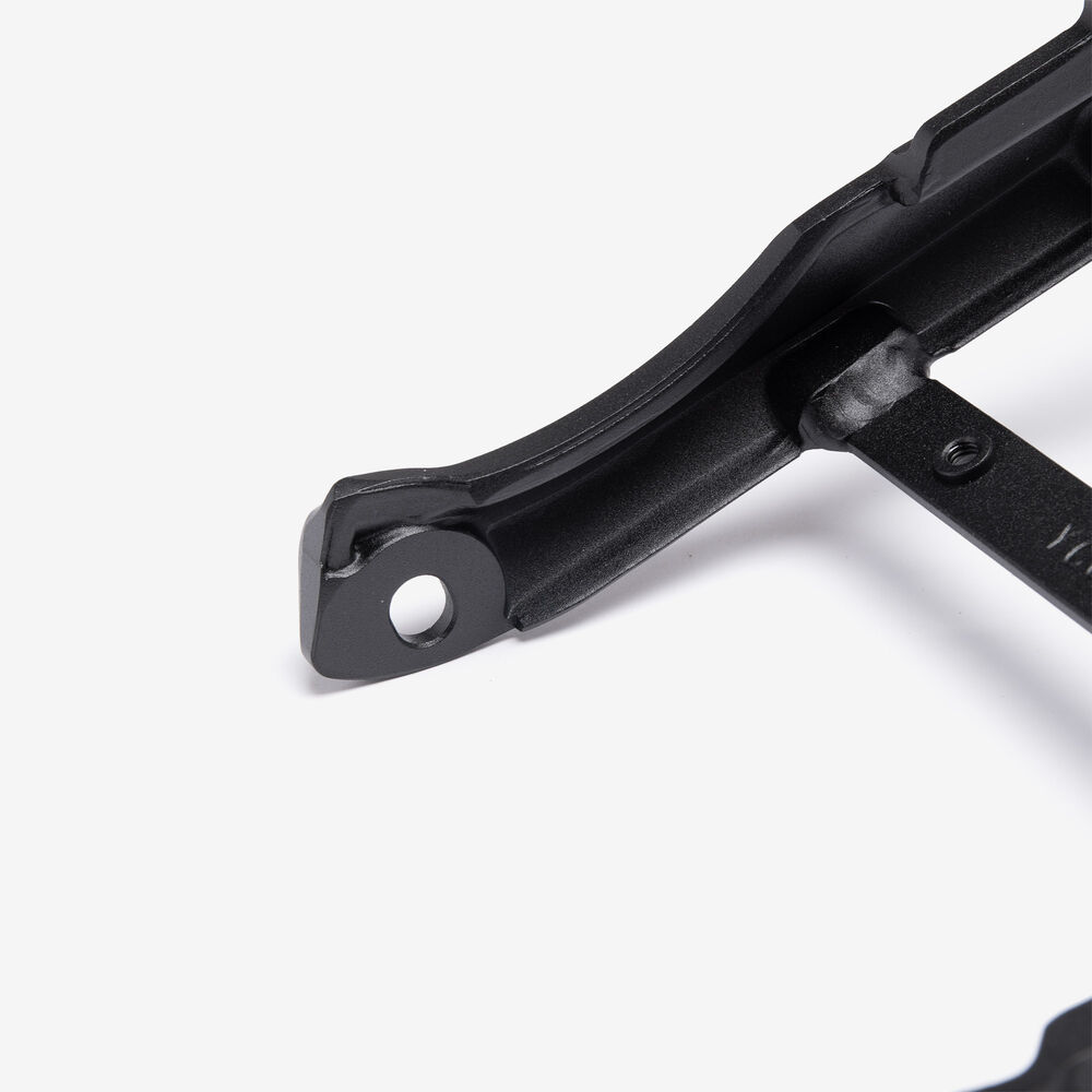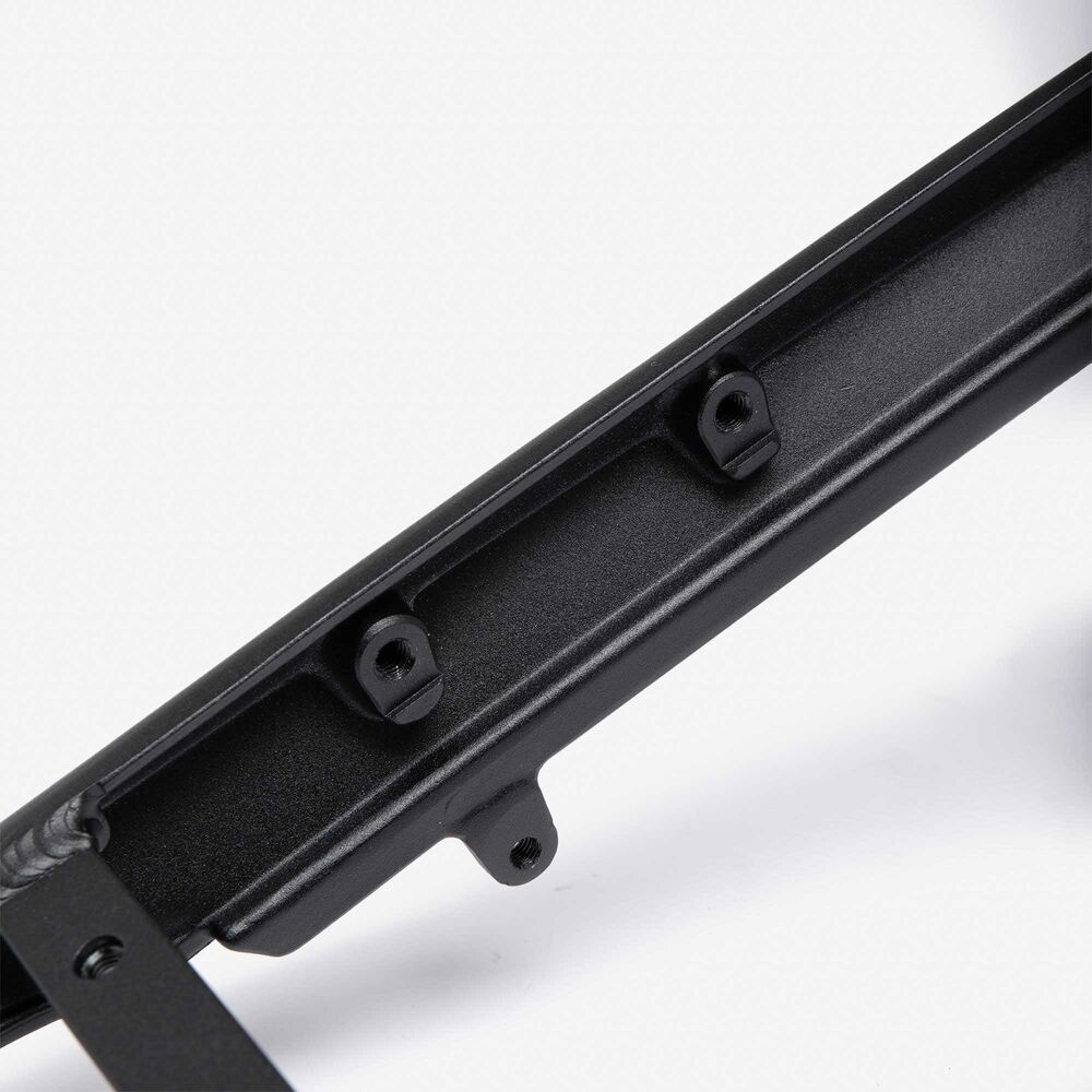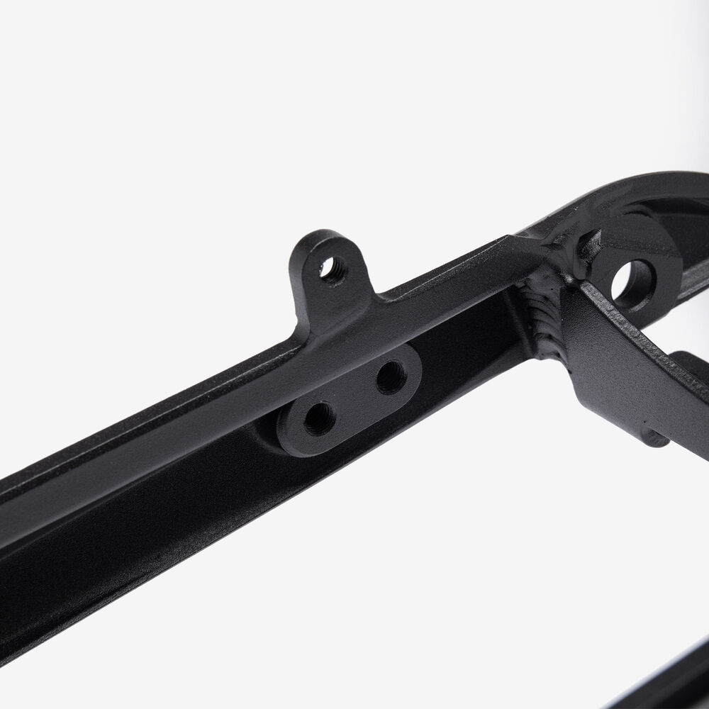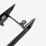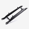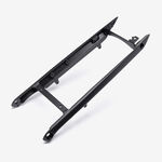 The front subframe of a motorcycle is a structural component that provides support and mounting points for the front section of the bike, including the handlebars, front suspension, and sometimes the engine or fuel tank. It is typically made from lightweight yet durable materials such as steel or aluminum. The front subframe helps to transfer loads and stresses from the front suspension and steering components to the main frame of the motorcycle, contributing to overall stability and handling.