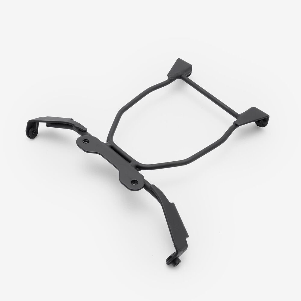 The front subframe of a motorcycle is a structural component that provides support and mounting points for the front section of the bike, including the handlebars, front suspension, and sometimes the engine or fuel tank. It is typically made from lightweight yet durable materials such as steel or aluminum. The front subframe helps to transfer loads and stresses from the front suspension and steering components to the main frame of the motorcycle, contributing to overall stability and handling.