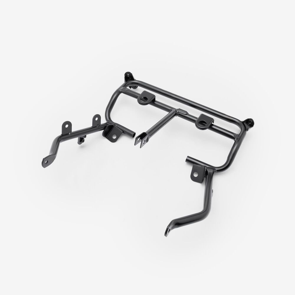 The front subframe of a motorcycle is a structural component that provides support and mounting points for the front section of the bike, including the handlebars, front suspension, and sometimes the engine or fuel tank. It is typically made from lightweight yet durable materials such as steel or aluminum. The front subframe helps to transfer loads and stresses from the front suspension and steering components to the main frame of the motorcycle, contributing to overall stability and handling.