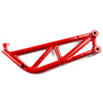 The rear subframe on a motorcycle is a structural component that supports and connects the rear portion of the bike's frame to the main frame. It typically provides mounting points for the rear seat, rear suspension, and often the rear fender and tail light assembly. Made from materials such as steel or aluminum, the rear subframe is designed to withstand the stresses and loads experienced during riding while maintaining the bike's structural integrity. It plays a crucial role in the motorcycle's overall stability, handling, and comfort, and may be replaceable or adjustable for customization or repair purposes.