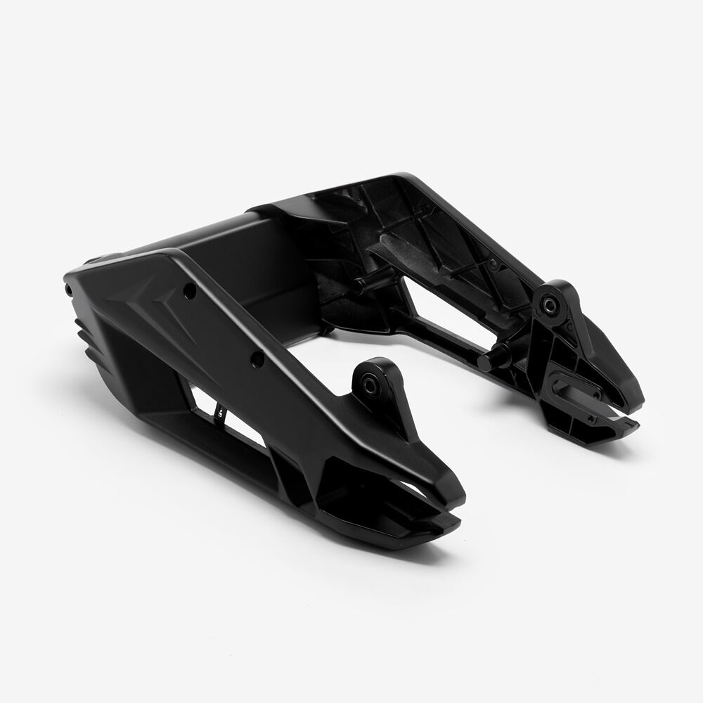 The rear subframe on a motorcycle is a structural component that supports and connects the rear portion of the bike's frame to the main frame. It typically provides mounting points for the rear seat, rear suspension, and often the rear fender and tail light assembly. Made from materials such as steel or aluminum, the rear subframe is designed to withstand the stresses and loads experienced during riding while maintaining the bike's structural integrity. It plays a crucial role in the motorcycle's overall stability, handling, and comfort, and may be replaceable or adjustable for customization or repair purposes.