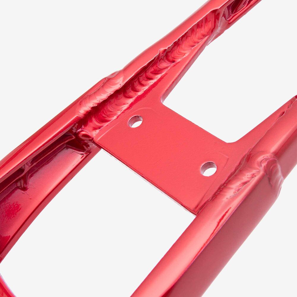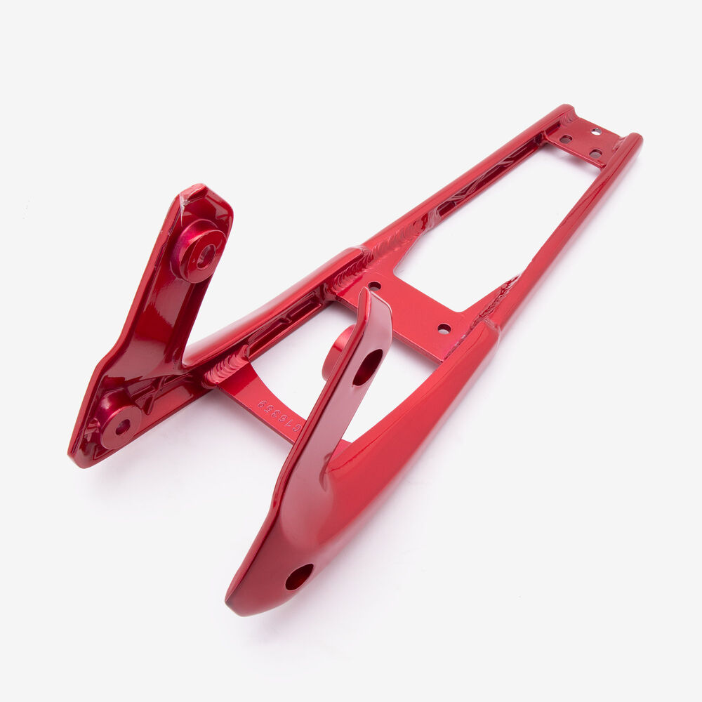 The rear subframe on a motorcycle is a structural component that supports and connects the rear portion of the bike's frame to the main frame. It typically provides mounting points for the rear seat, rear suspension, and often the rear fender and tail light assembly. Made from materials such as steel or aluminum, the rear subframe is designed to withstand the stresses and loads experienced during riding while maintaining the bike's structural integrity. It plays a crucial role in the motorcycle's overall stability, handling, and comfort, and may be replaceable or adjustable for customization or repair purposes.