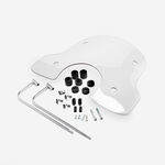The visor or screen on a motorcycle is a transparent protective cover mounted on the front of the helmet or motorcycle to shield the rider from wind, debris, insects, and UV rays. It can be made from materials such as polycarbonate or acrylic and comes in various tints and finishes to enhance visibility and reduce glare. The visor is crucial for maintaining clear vision and rider comfort while also contributing to safety by protecting the rider’s face and eyes. Many visors are adjustable or replaceable, allowing for customization based on riding conditions and personal preference.