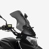 The visor or screen on a motorcycle is a transparent protective cover mounted on the front of the helmet or motorcycle to shield the rider from wind, debris, insects, and UV rays. It can be made from materials such as polycarbonate or acrylic and comes in various tints and finishes to enhance visibility and reduce glare. The visor is crucial for maintaining clear vision and rider comfort while also contributing to safety by protecting the rider’s face and eyes. Many visors are adjustable or replaceable, allowing for customization based on riding conditions and personal preference.