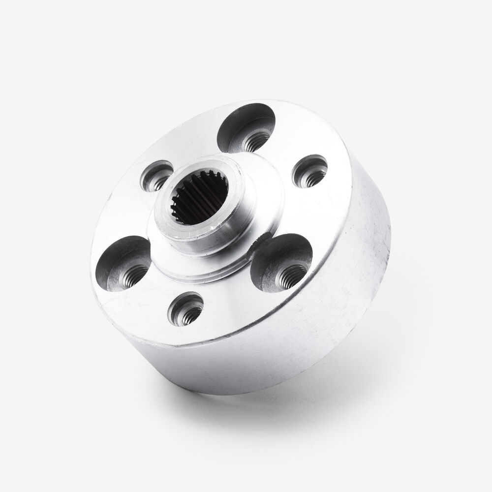A disc spacer with bolts is a component used in a motorcycle’s braking system. The spacer is placed between the brake disc and the wheel hub to ensure proper alignment and clearance. It helps maintain the correct distance for the brake caliper to function effectively. The bolts secure the disc and spacer in place, providing stability and safety during braking.