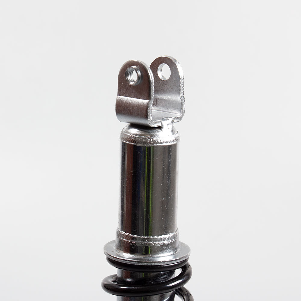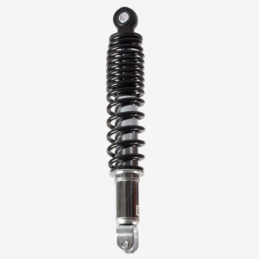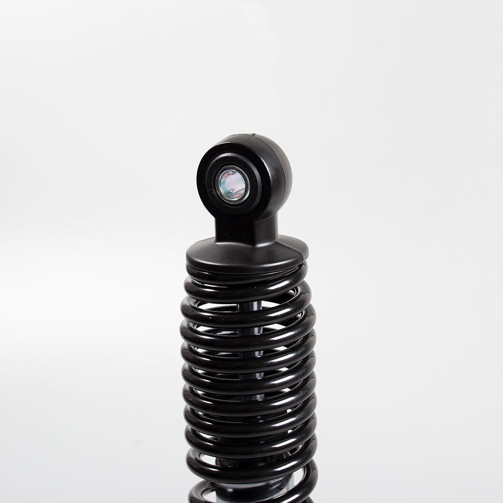 The shock absorber on a motorcycle is a key component of the suspension system designed to dampen and control the impact of road irregularities and vibrations. It absorbs and dissipates energy from the road or trail, providing a smoother and more stable ride by controlling the rate at which the motorcycle's suspension compresses and rebounds. Typically consisting of a piston, hydraulic fluid, and a spring, the shock absorber helps maintain wheel contact with the road, improves handling, and enhances rider comfort.