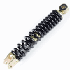 The shock absorber on a motorcycle is a key component of the suspension system designed to dampen and control the impact of road irregularities and vibrations. It absorbs and dissipates energy from the road or trail, providing a smoother and more stable ride by controlling the rate at which the motorcycle's suspension compresses and rebounds. Typically consisting of a piston, hydraulic fluid, and a spring, the shock absorber helps maintain wheel contact with the road, improves handling, and enhances rider comfort.