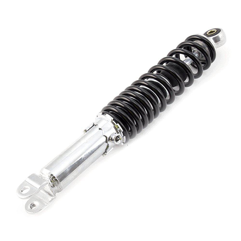 The shock absorber on a motorcycle is a key component of the suspension system designed to dampen and control the impact of road irregularities and vibrations. It absorbs and dissipates energy from the road or trail, providing a smoother and more stable ride by controlling the rate at which the motorcycle's suspension compresses and rebounds. Typically consisting of a piston, hydraulic fluid, and a spring, the shock absorber helps maintain wheel contact with the road, improves handling, and enhances rider comfort.