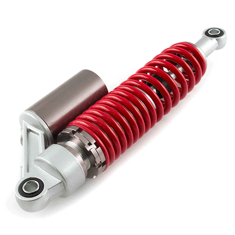 The shock absorber on a motorcycle is a key component of the suspension system designed to dampen and control the impact of road irregularities and vibrations. It absorbs and dissipates energy from the road or trail, providing a smoother and more stable ride by controlling the rate at which the motorcycle's suspension compresses and rebounds. Typically consisting of a piston, hydraulic fluid, and a spring, the shock absorber helps maintain wheel contact with the road, improves handling, and enhances rider comfort.