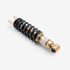 The shock absorber on a motorcycle is a key component of the suspension system designed to dampen and control the impact of road irregularities and vibrations. It absorbs and dissipates energy from the road or trail, providing a smoother and more stable ride by controlling the rate at which the motorcycle's suspension compresses and rebounds. Typically consisting of a piston, hydraulic fluid, and a spring, the shock absorber helps maintain wheel contact with the road, improves handling, and enhances rider comfort.
