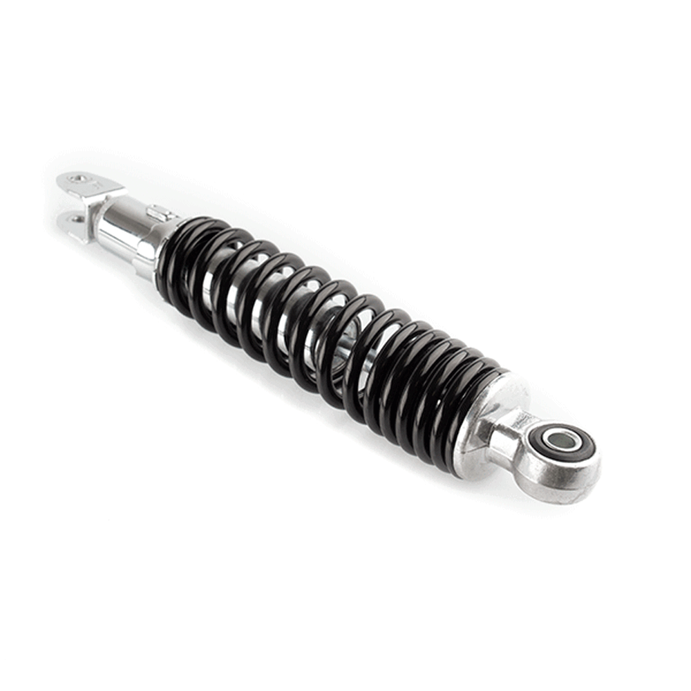 The shock absorber on a motorcycle is a key component of the suspension system designed to dampen and control the impact of road irregularities and vibrations. It absorbs and dissipates energy from the road or trail, providing a smoother and more stable ride by controlling the rate at which the motorcycle's suspension compresses and rebounds. Typically consisting of a piston, hydraulic fluid, and a spring, the shock absorber helps maintain wheel contact with the road, improves handling, and enhances rider comfort.
