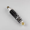 The shock absorber on a motorcycle is a key component of the suspension system designed to dampen and control the impact of road irregularities and vibrations. It absorbs and dissipates energy from the road or trail, providing a smoother and more stable ride by controlling the rate at which the motorcycle's suspension compresses and rebounds. Typically consisting of a piston, hydraulic fluid, and a spring, the shock absorber helps maintain wheel contact with the road, improves handling, and enhances rider comfort.