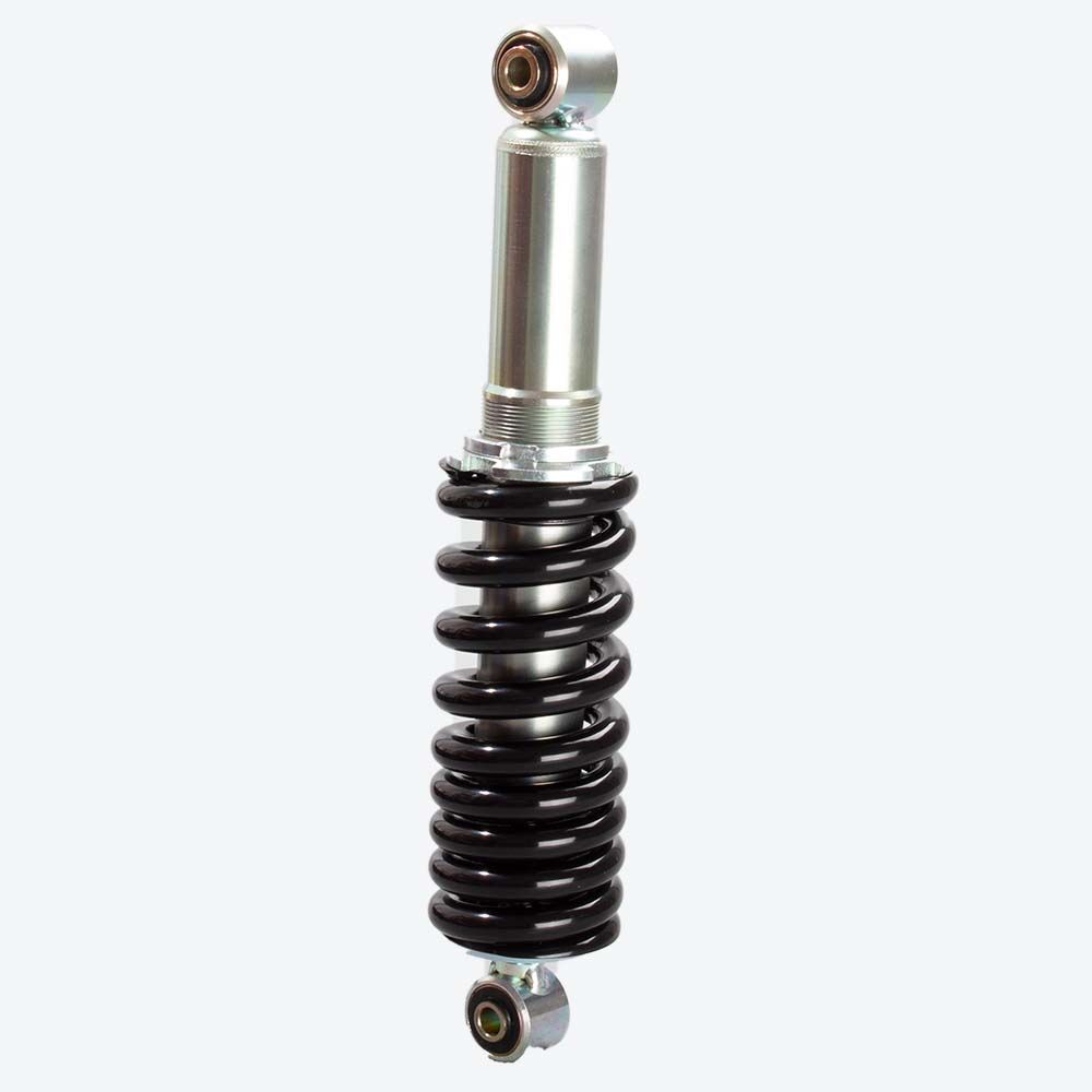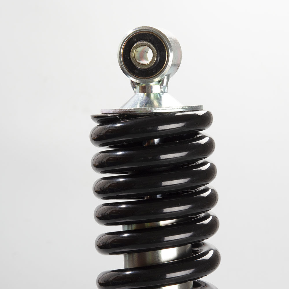 The shock absorber on a motorcycle is a key component of the suspension system designed to dampen and control the impact of road irregularities and vibrations. It absorbs and dissipates energy from the road or trail, providing a smoother and more stable ride by controlling the rate at which the motorcycle's suspension compresses and rebounds. Typically consisting of a piston, hydraulic fluid, and a spring, the shock absorber helps maintain wheel contact with the road, improves handling, and enhances rider comfort.