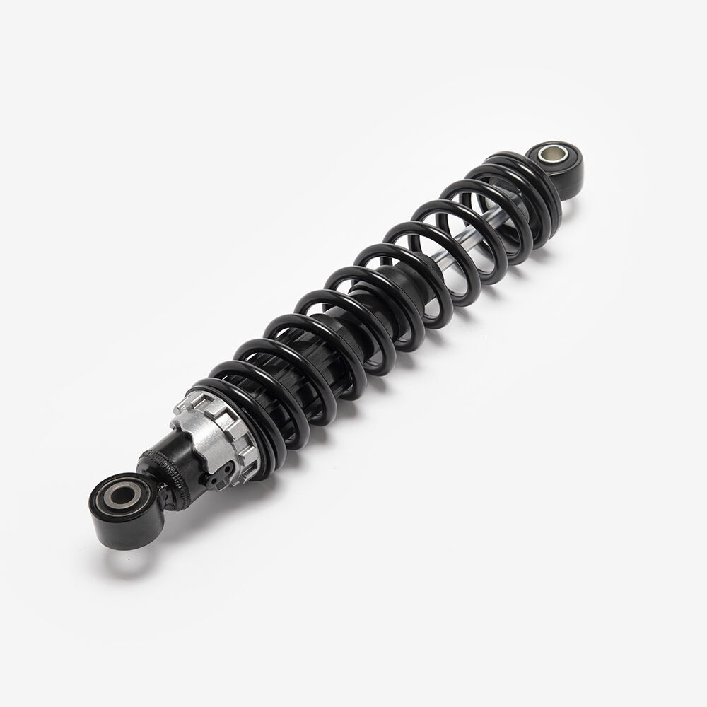 The shock absorber on a motorcycle is a key component of the suspension system designed to dampen and control the impact of road irregularities and vibrations. It absorbs and dissipates energy from the road or trail, providing a smoother and more stable ride by controlling the rate at which the motorcycle's suspension compresses and rebounds. Typically consisting of a piston, hydraulic fluid, and a spring, the shock absorber helps maintain wheel contact with the road, improves handling, and enhances rider comfort.