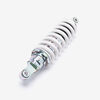 The shock absorber on a motorcycle is a key component of the suspension system designed to dampen and control the impact of road irregularities and vibrations. It absorbs and dissipates energy from the road or trail, providing a smoother and more stable ride by controlling the rate at which the motorcycle's suspension compresses and rebounds. Typically consisting of a piston, hydraulic fluid, and a spring, the shock absorber helps maintain wheel contact with the road, improves handling, and enhances rider comfort.