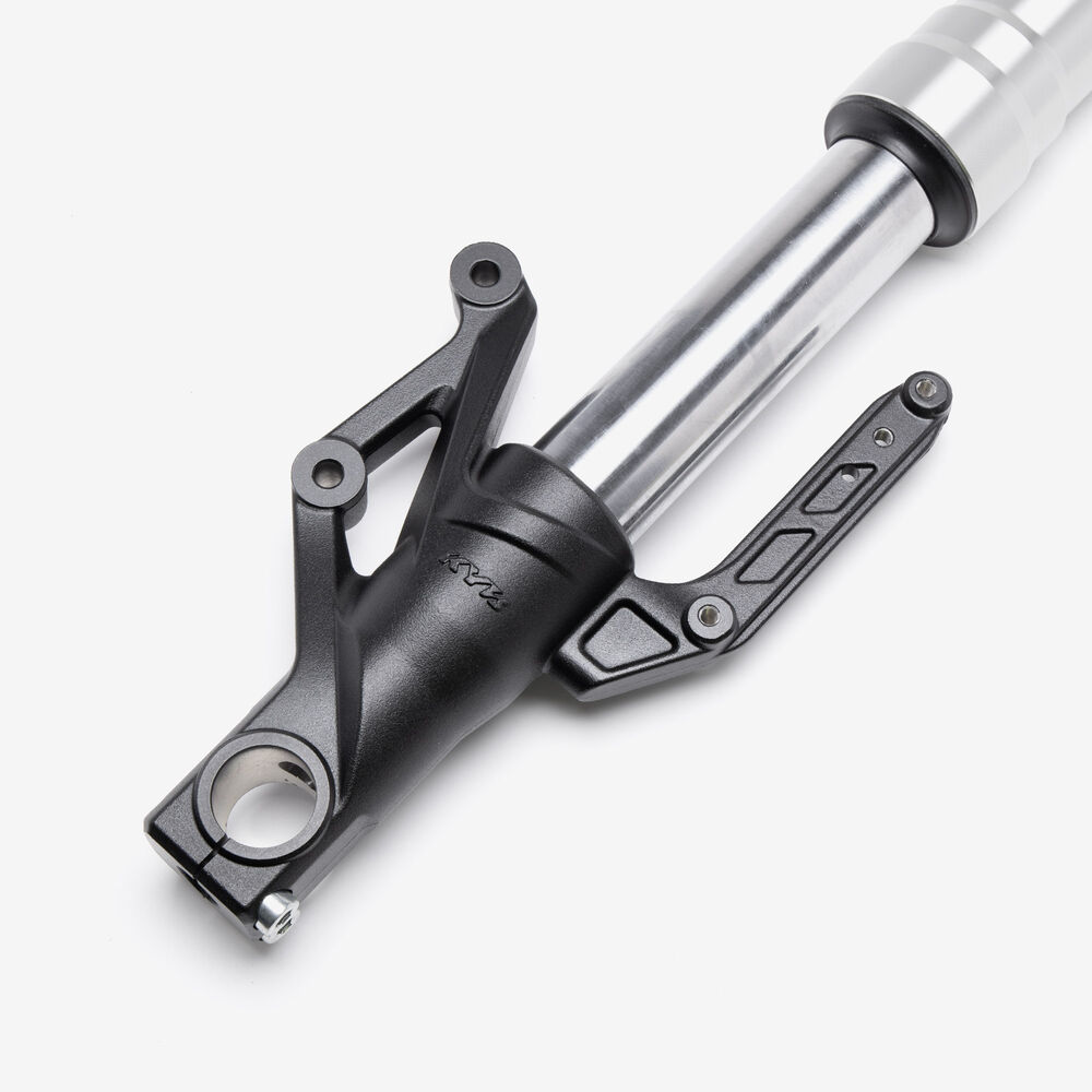 The shock absorber on a motorcycle is a key component of the suspension system designed to dampen and control the impact of road irregularities and vibrations. It absorbs and dissipates energy from the road or trail, providing a smoother and more stable ride by controlling the rate at which the motorcycle's suspension compresses and rebounds. Typically consisting of a piston, hydraulic fluid, and a spring, the shock absorber helps maintain wheel contact with the road, improves handling, and enhances rider comfort.