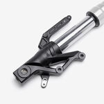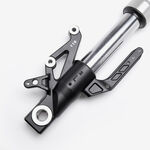 The shock absorber on a motorcycle is a key component of the suspension system designed to dampen and control the impact of road irregularities and vibrations. It absorbs and dissipates energy from the road or trail, providing a smoother and more stable ride by controlling the rate at which the motorcycle's suspension compresses and rebounds. Typically consisting of a piston, hydraulic fluid, and a spring, the shock absorber helps maintain wheel contact with the road, improves handling, and enhances rider comfort.