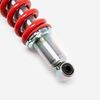 The shock absorber on a motorcycle is a key component of the suspension system designed to dampen and control the impact of road irregularities and vibrations. It absorbs and dissipates energy from the road or trail, providing a smoother and more stable ride by controlling the rate at which the motorcycle's suspension compresses and rebounds. Typically consisting of a piston, hydraulic fluid, and a spring, the shock absorber helps maintain wheel contact with the road, improves handling, and enhances rider comfort.