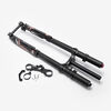 The shock absorber on a motorcycle is a key component of the suspension system designed to dampen and control the impact of road irregularities and vibrations. It absorbs and dissipates energy from the road or trail, providing a smoother and more stable ride by controlling the rate at which the motorcycle's suspension compresses and rebounds. Typically consisting of a piston, hydraulic fluid, and a spring, the shock absorber helps maintain wheel contact with the road, improves handling, and enhances rider comfort.