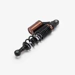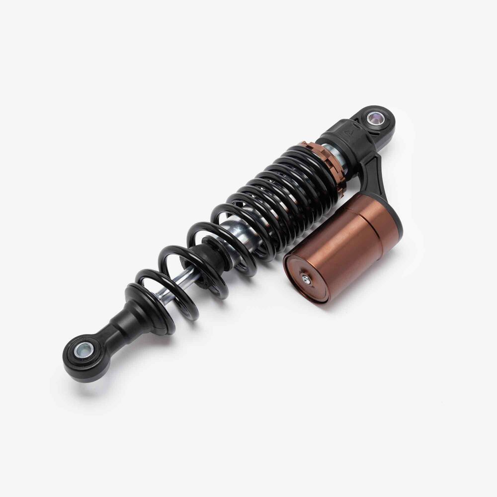 The shock absorber on a motorcycle is a key component of the suspension system designed to dampen and control the impact of road irregularities and vibrations. It absorbs and dissipates energy from the road or trail, providing a smoother and more stable ride by controlling the rate at which the motorcycle's suspension compresses and rebounds. Typically consisting of a piston, hydraulic fluid, and a spring, the shock absorber helps maintain wheel contact with the road, improves handling, and enhances rider comfort.