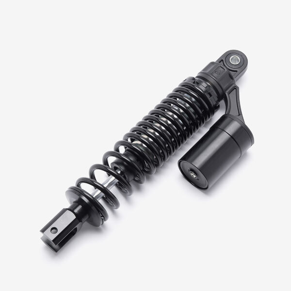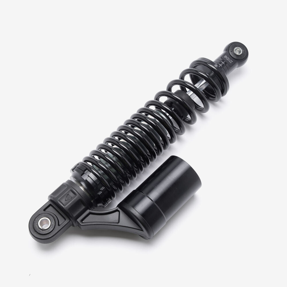 The shock absorber on a motorcycle is a key component of the suspension system designed to dampen and control the impact of road irregularities and vibrations. It absorbs and dissipates energy from the road or trail, providing a smoother and more stable ride by controlling the rate at which the motorcycle's suspension compresses and rebounds. Typically consisting of a piston, hydraulic fluid, and a spring, the shock absorber helps maintain wheel contact with the road, improves handling, and enhances rider comfort.