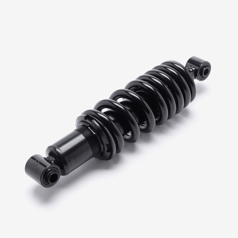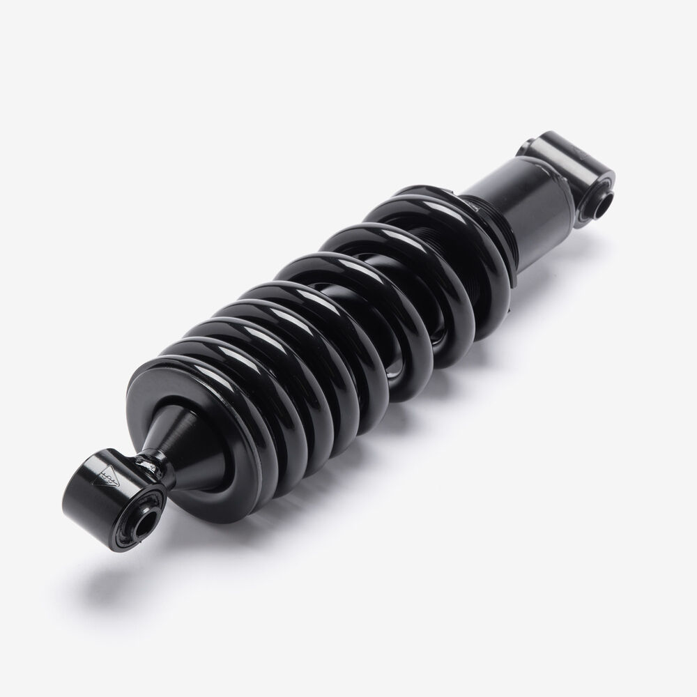 The shock absorber on a motorcycle is a key component of the suspension system designed to dampen and control the impact of road irregularities and vibrations. It absorbs and dissipates energy from the road or trail, providing a smoother and more stable ride by controlling the rate at which the motorcycle's suspension compresses and rebounds. Typically consisting of a piston, hydraulic fluid, and a spring, the shock absorber helps maintain wheel contact with the road, improves handling, and enhances rider comfort.