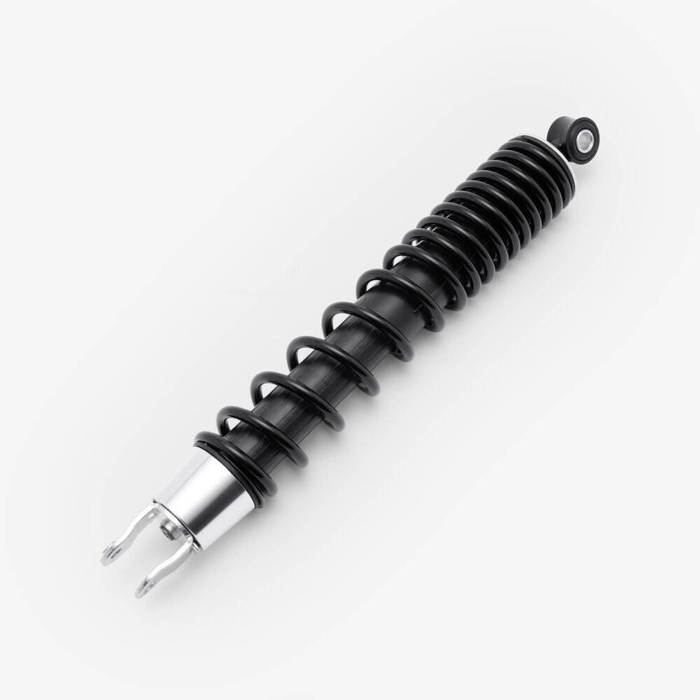 The shock absorber on a motorcycle is a key component of the suspension system designed to dampen and control the impact of road irregularities and vibrations. It absorbs and dissipates energy from the road or trail, providing a smoother and more stable ride by controlling the rate at which the motorcycle's suspension compresses and rebounds. Typically consisting of a piston, hydraulic fluid, and a spring, the shock absorber helps maintain wheel contact with the road, improves handling, and enhances rider comfort.
