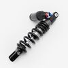 The shock absorber on a motorcycle is a key component of the suspension system designed to dampen and control the impact of road irregularities and vibrations. It absorbs and dissipates energy from the road or trail, providing a smoother and more stable ride by controlling the rate at which the motorcycle's suspension compresses and rebounds. Typically consisting of a piston, hydraulic fluid, and a spring, the shock absorber helps maintain wheel contact with the road, improves handling, and enhances rider comfort.
