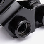 The rear shock linkage is a component of a motorcycle's rear suspension system that connects the rear shock absorber to the swingarm and frame. It typically consists of a series of levers, arms, and pivot points designed to transfer forces and adjust the suspension’s behavior. The linkage helps to control the rear suspension's movement, providing smoother ride quality and better handling by optimizing the shock absorber's performance.